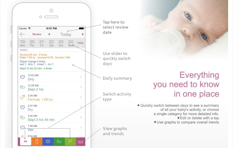 This app definitely lives up to its name. You can track feeding sessions, diaper changes, sleep times, pumping sessions, and more. It offers a lot of help to already overwhelmed and sleep deprived moms to monitor the key activities with her baby which are basically feeding, sleeping and changing nappies. You think you’ll remember which breast you nursed your child with just less than an hour ago? Or when you last changed your baby’s diaper? Think again. Mommy brain is real.
